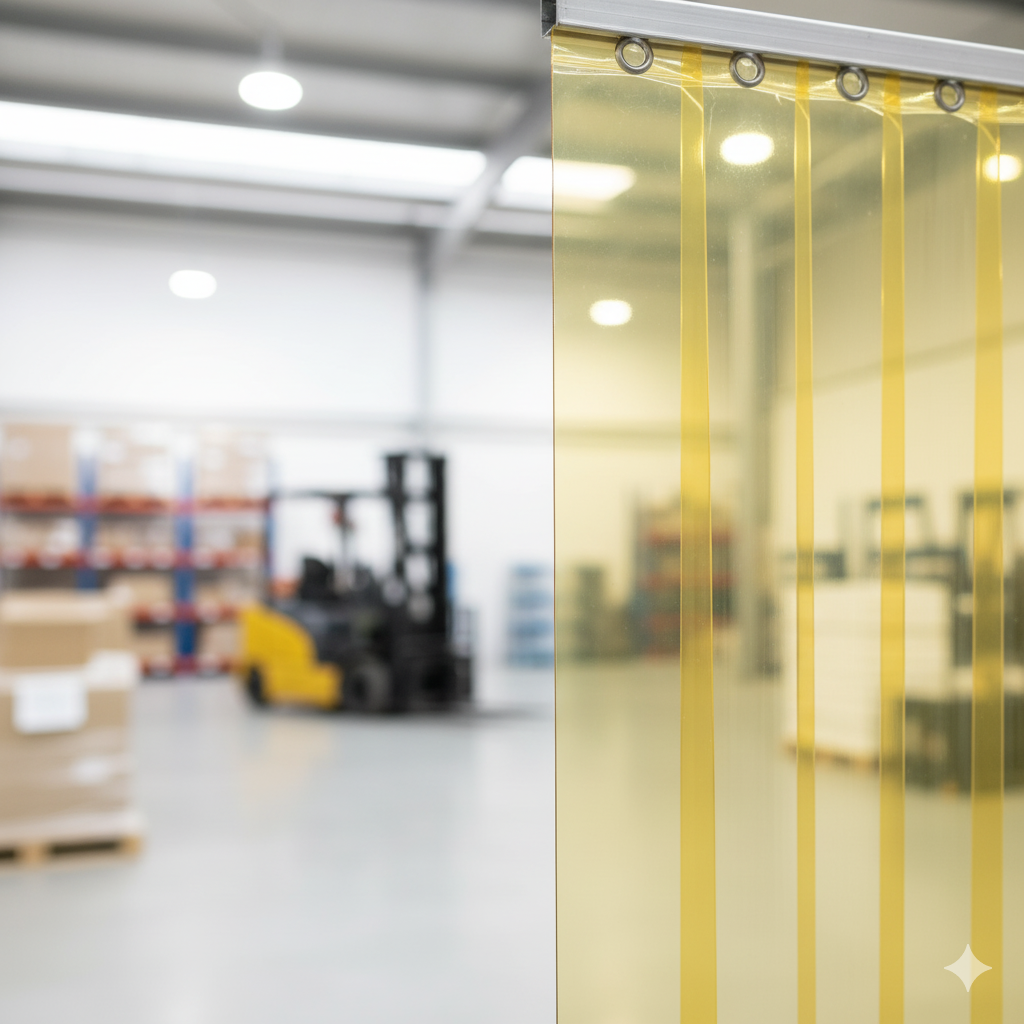 - Tecnología Repelente Integrada: El pigmento amarillo inhibe la capacidad de un insecto para ver la luz detrás de la propia cortina de PVC, ocultando así la abertura de la puerta a las plagas.